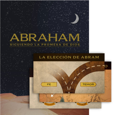 Abraham: Siguiendo la promesa de Dios incluye bosquejos para predicar, diapositivas de presentación para el sermón y currículum para grupos pequeños/escuela dominical de adultos.